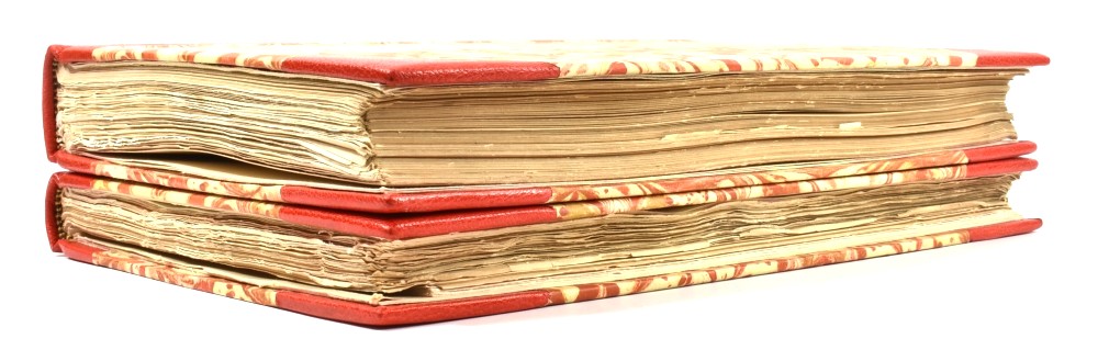 Nydelige priv. halvskinnbd. med 4 opphøyde ryggbånd og marmorerte dekler.