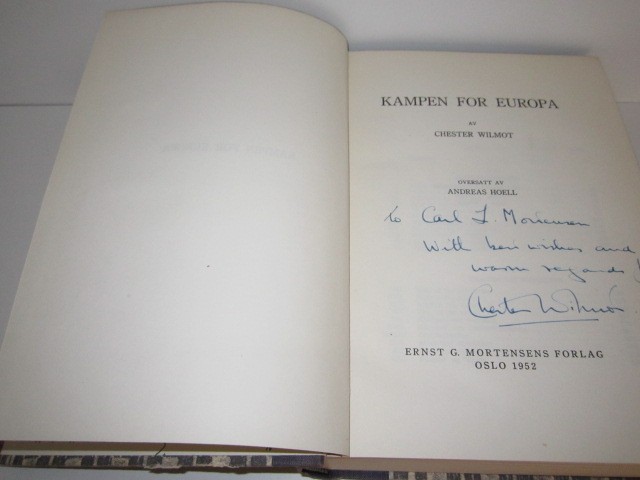 Chester Wilmot: Kampen for Europa. Signert Artikkelnr.: 9228 Chester Wilmot: Kampen for Europa. Dedikasjon til Carl L. Mortensen signert Chester Wilmot på tittelblad. NOK250,00 inkl. mva. På lager Kjøp Vipps hurtigkasseKjøp nå med Vipps hurtigkasse Del dette Produktinfo Produktanmeldelser (0) Chester Wilmot: Kampen for Europa. Dedikasjon til Carl L. Mortensen signert Chester Wilmot på tittelblad. Oversatt av Andreas Hoell. Enst G. Mortensens Forlag Oslo 1952. 8vo. 645 s. Orig. sjirtingryggbd. Noe solbleket rygg. Skriv en produktanmeldelse og del dine erfaringer med dette produktet med andre kunder. Email Navn Din vurdering? 1 star 2 star 3 star 4 star 5 star 6 star Oppgi en tittel for anmeldelsen din Skriv inn produktanmeldelsen i feltet under