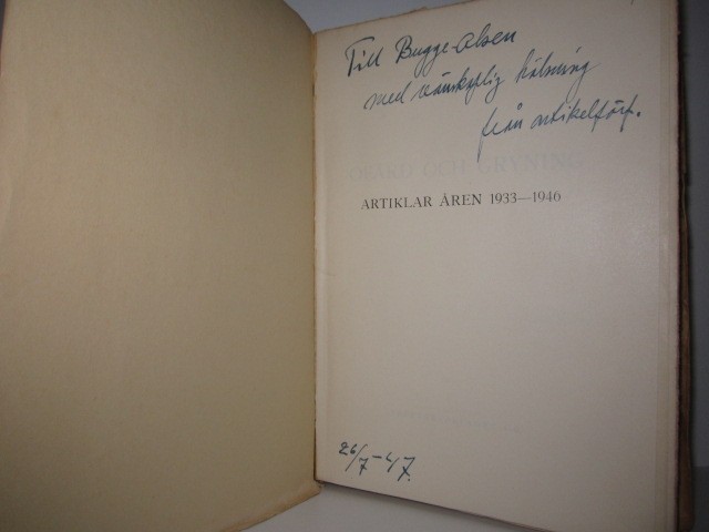 Atos Wirtanen: Ofärd och gryning. Signert Artikkelnr.: 9300 Atos Wirtanen: Ofärd och gryning. Artiklar åren 1933-1946. Dedikasjon signert artikelförf. på første blad. NOK200,00 inkl. mva. På lager Kjøp Vipps hurtigkasseKjøp nå med Vipps hurtigkasse Del dette Produktinfo Produktanmeldelser (0) Atos Wirtanen: Trøbbel og morgengry. Artikler i årene 1933-1946 Dedikasjon signert artikkel forf. på første blad Ukuttet toppseksjon. Arbetarforlaget. Helsingfors 1946. 8vo. 376 s. Orig. dekke. Toppskåret med noen flekker. Skriv en produktanmeldelse og del dine erfaringer med dette produktet med andre kunder. Email Navn Din vurdering? 1 star 2 star 3 star 4 star 5 star 6 star Oppgi en tittel for anmeldelsen din Skriv inn produktanmeldelsen i feltet under