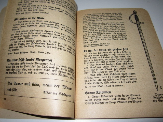Im Auftrag des Oberkommandos der Wehrmacht herausgegeben von Hans Baumann, Leutnant. Ludwig Voggenreiter. Potsdam 1939. 2., veränderte Auflage. Liten 8vo. 128 + (1) s. Orig. omslag. Illustrert.