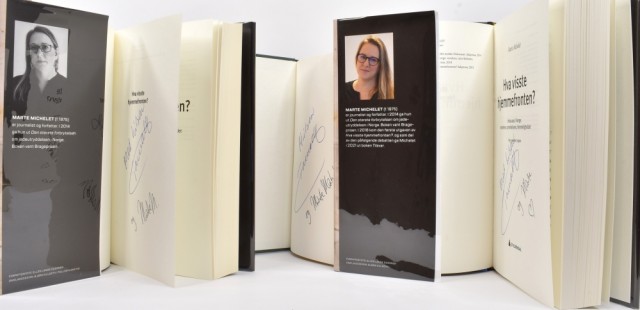 Signert av Marte og Tania Michelet på forsatsblad.