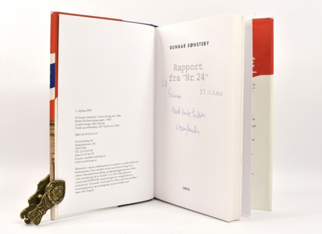 Gunnar Sønsteby: Rapport fra "Nr. 24" Signert Artikkelnr.: 6327 Gunnar Sønsteby: Rapport fra "Nr. 24" Dedikasjon fra Gunnar Sønsteby, 23.11.2000 på tittelblad. NOK200,00 inkl. mva. På lager Kjøp Vipps hurtigkasseKjøp nå med Vipps hurtigkasse Del dette Produktinfo Produktanmeldelser (0) Gunnar Sønsteby: Rapport fra "Nr. 24" Dedikasjon fra Gunnar Sønsteby, 23.11.2000 på tittelblad. Orion Forlag, Oslo. 3. opplag 2000. 8vo. 237 s. Orig. bd. med smussomslag. Svakt kantslitt smussomslag med et par små rifter. Rikt illustrert. Skriv en produktanmeldelse og del dine erfaringer med dette produktet med andre kunder. Email Navn Din vurdering? 1 star 2 star 3 star 4 star 5 star 6 star Oppgi en tittel for anmeldelsen din Skriv inn produktanmeldelsen i feltet under