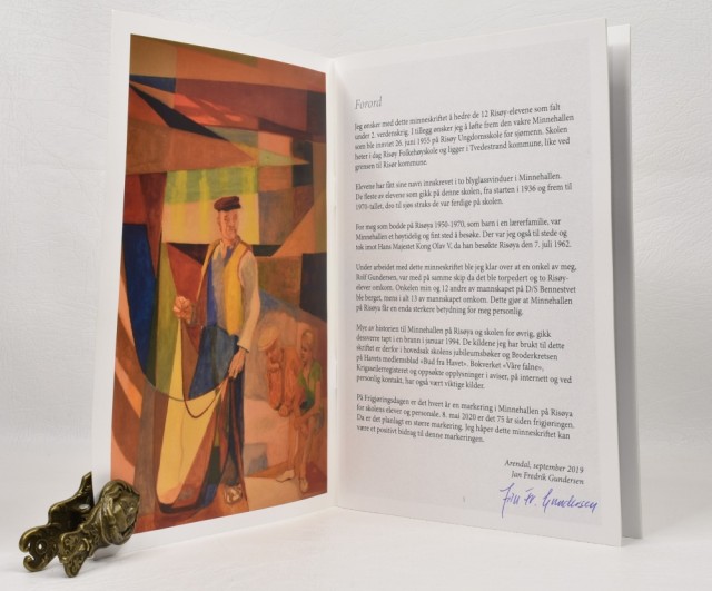 Jan Fredrik Gundersen: Minnehallen på Risøya. Signert. Artikkelnr.: 5898 Jan Fredrik Gundersen: Minnehallen på Risøya. Elevene som falt 1940-1945. NOK125,00 inkl. mva. På lager Kjøp Vipps hurtigkasseKjøp nå med Vipps hurtigkasse Del dette Produktinfo Produktanmeldelser (0) Jan Fredrik Gundersen: Minnehallen på Risøya. Elevene som falt 1940-1945. Et minneskrift. Signert av Jan Fr. Gundersen. Arendal, september 2019. 8vo. 27 s. Orig. kombinert omslag og tittelblad. Rikt illustrert. Skriv en produktanmeldelse og del dine erfaringer med dette produktet med andre kunder. Email Navn Din vurdering? 1 star 2 star 3 star 4 star 5 star 6 star Oppgi en tittel for anmeldelsen din Skriv inn produktanmeldelsen i feltet under