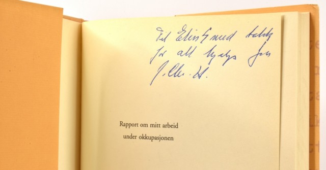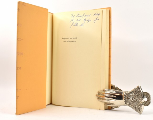 Jens Chr. Hauge: Rapport om mitt arbeid under okkupasjonen. Signert. Artikkelnr.: 6269 Jens Chr. Hauge: Rapport om mitt arbeid under okkupasjonen. Dedikasjon fra J. Chr. H. på halvtittelblad. NOK400,00 inkl. mva. På lager Kjøp Vipps hurtigkasseKjøp nå med Vipps hurtigkasse Del dette Produktinfo Produktanmeldelser (0) Jens Chr. Hauge: Rapport om mitt arbeid under okkupasjonen. Dedikasjon fra J. Chr. H. på halvtittelblad. Gyldendal Norsk Forlag, Oslo 1994. 245 + [1] s. Orig. bd. med smussomslag. Meget pen. Skriv en produktanmeldelse og del dine erfaringer med dette produktet med andre kunder. Email Navn Din vurdering? 1 star 2 star 3 star 4 star 5 star 6 star Oppgi en tittel for anmeldelsen din Skriv inn produktanmeldelsen i feltet under