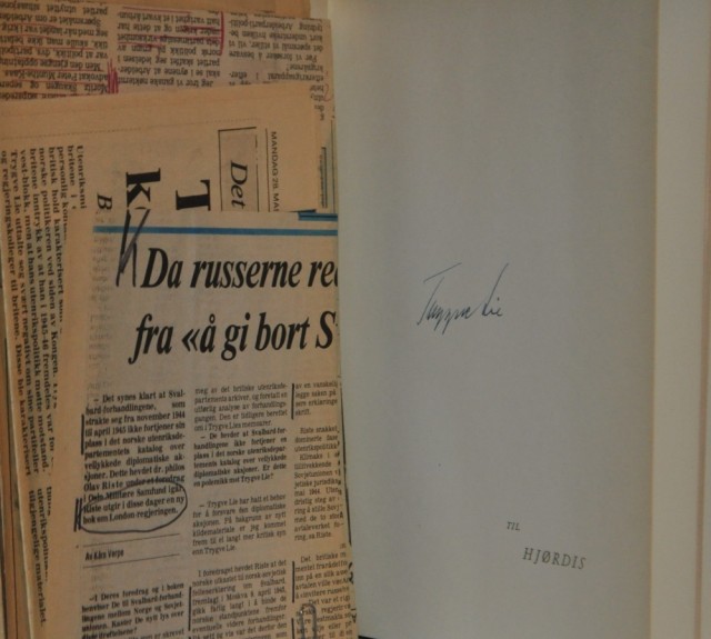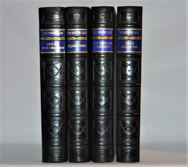 Syv år for freden. 3. opplag. Signert av Trygve Lie på fribladet.
