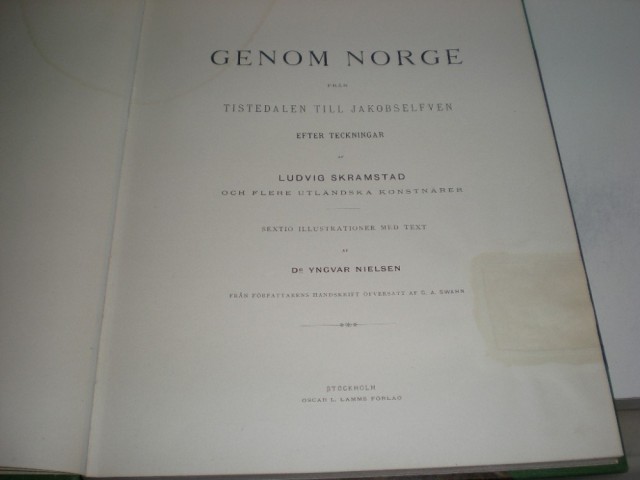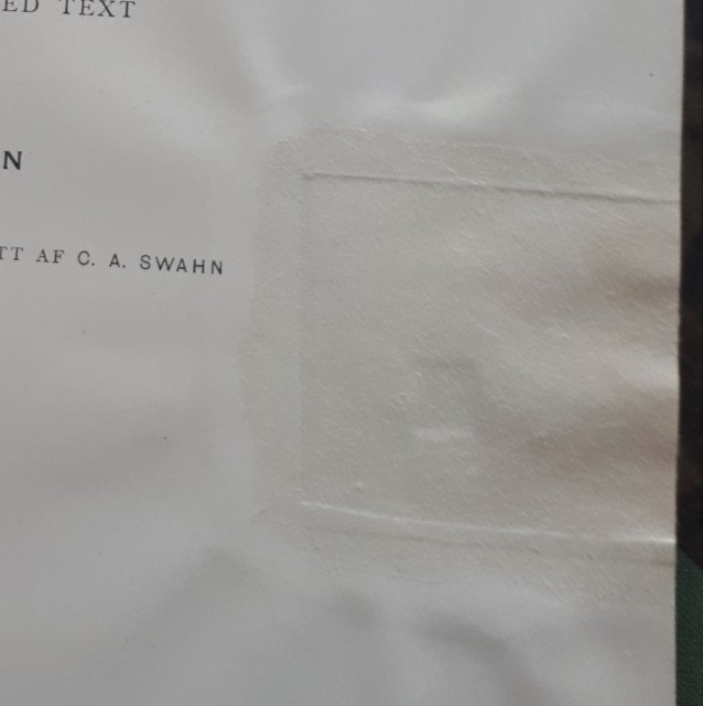 Oscar L. Laams Förlag Stockholm 1882. 4to. 100 s. Senere priv. sjirtingryggbd. Hull rep. på i de tre første blad. Berører ikke tekst.