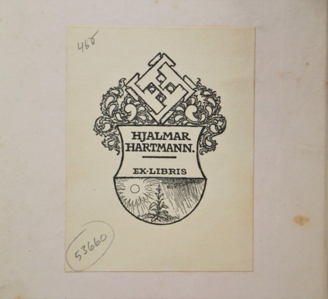 Noe gulplettede sider. Noe slitasje i hjørner. Exlibris på forsatsblad: Hjalmar Hartmann.