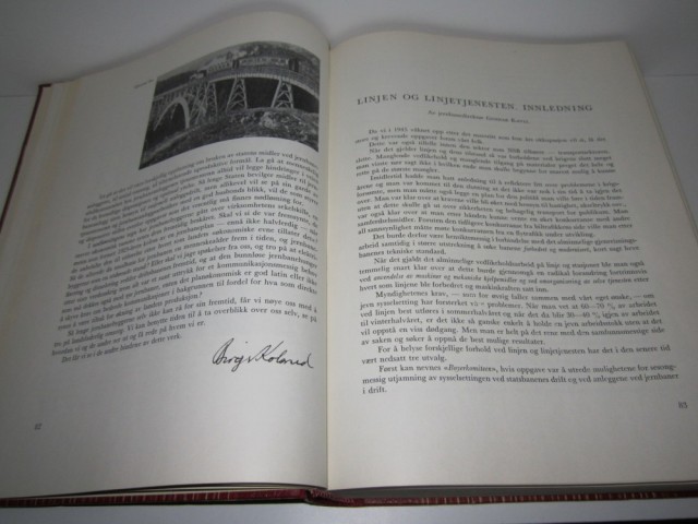 De Norske Jernbaner og deres Personale. Personalbiografier - Drifts-historie. To bind. Per Hohle - Johs B. Hegna - Joh B. Straume - Erling W. Ingskog (red) Norsk Arkivforsking Oslo 1957-1959. 4to. 389 + 633 + (2) s. Orig. skinnryggbd. Rikt illustrert.