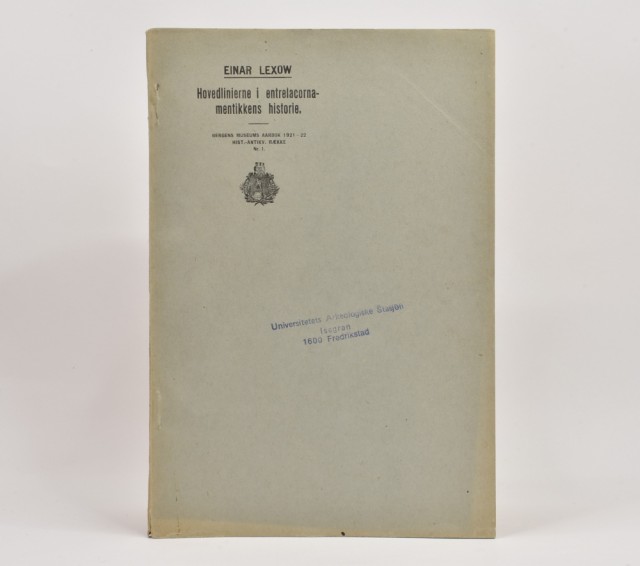Einar Lexow: Hovedlinierne i entrelacornamentikkens historie. Artikkelnr.: ark050 Einar Lexow: Hovedlinierne i entrelacornamentikkens historie. Med 10 plancher. NOK150,00 inkl. mva. På lager Kjøp Vipps hurtigkasseKjøp nå med Vipps hurtigkasse Del dette Produktinfo Produktanmeldelser (0) Einar Lexow: Hovedlinierne i entrelacornamentikkens historie. Med 10 plancher. Hist.-antikv. række nr. 1. Bergens Museums Aarbok 1921-22. Bergen 1922. 8vo. 92 + [1] + pl. I-X s. Orig. omslag. Skriv en produktanmeldelse og del dine erfaringer med dette produktet med andre kunder. Email Navn Din vurdering? 1 star 2 star 3 star 4 star 5 star 6 star Oppgi en tittel for anmeldelsen din Skriv inn produktanmeldelsen i feltet under
