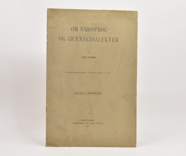 Joh. Storm: Om nabosprog og grænsedialekter. Artikkelnr.: ark053 Joh. Storm: Om nabosprog og grænsedialekter. NOK150,00 inkl. mva. På lager Kjøp Vipps hurtigkasseKjøp nå med Vipps hurtigkasse Del dette Produktinfo Produktanmeldelser (0) Joh. Storm: Om nabosprog og grænsedialekter. (Videnskabsselskapets Skrifter. II. Hist.-filos. klasse. 1911. No. 4) Jacob dybwad, Kristiania 1911. Liten 4to. 18 s. Orig. omslag. Uoppskåret. Skriv en produktanmeldelse og del dine erfaringer med dette produktet med andre kunder. Email Navn Din vurdering? 1 star 2 star 3 star 4 star 5 star 6 star Oppgi en tittel for anmeldelsen din Skriv inn produktanmeldelsen i feltet under