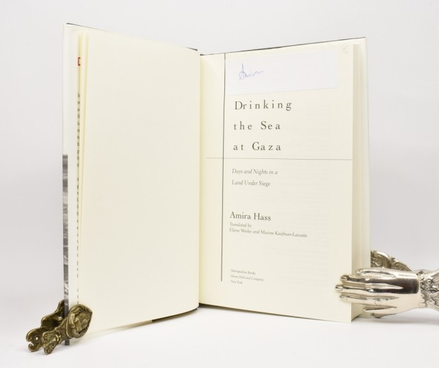 Innlimt lapp, signert Amira (Hass) på tittelblad.
