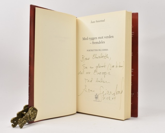 Åsne Seierstad: Med ryggen mot verden - fremdeles. Signert. Artikkelnr.: AS235 Åsne Seierstad: Med ryggen mot verden - fremdeles. Portretter fra Serbia. Dedikasjon til Elisabeth 30.08.04 fra Åsne Seierstad på tittelblad. NOK150,00 inkl. mva. På lager Kjøp Vipps hurtigkasseKjøp nå med Vipps hurtigkasse Del dette Produktinfo Produktanmeldelser (0) Åsne Seierstad: Med ryggen mot verden - fremdeles. Portretter fra Serbia. Dedikasjon til Elisabeth 30.08.04 fra Åsne Seierstad på tittelblad. J. W. Cappelens Forlag 2004. 8vo. 279 + [2] s. Orig. bd. med noe slitt smussomslag. Skriv en produktanmeldelse og del dine erfaringer med dette produktet med andre kunder. Email Navn Din vurdering? 1 star 2 star 3 star 4 star 5 star 6 star Oppgi en tittel for anmeldelsen din Skriv inn produktanmeldelsen i feltet under