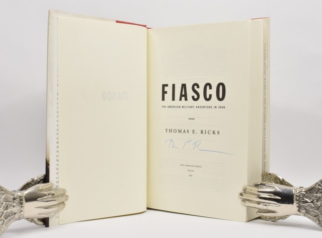 Thomas E. Ricks: Fiasco. Signed. Artikkelnr.: AS269 Thomas E. Ricks: Fiasco. The American Military Adventures in Iraq. Signed by Thomas E. Ricks on title page. NOK300,00 inkl. mva. På lager Kjøp Vipps hurtigkasseKjøp nå med Vipps hurtigkasse Del dette Produktinfo Produktanmeldelser (0) Thomas E. Ricks: Fiasco. The American Military Adventures in Iraq. Signed by Thomas E. Ricks on title page. The Penguin Press, New York 2006. 8vo. xiv + 482 pp. Publishers board with dust jacket. Slightly illustrated. A nice copy. Skriv en produktanmeldelse og del dine erfaringer med dette produktet med andre kunder. Email Navn Din vurdering? 1 star 2 star 3 star 4 star 5 star 6 star Oppgi en tittel for anmeldelsen din Skriv inn produktanmeldelsen i feltet under