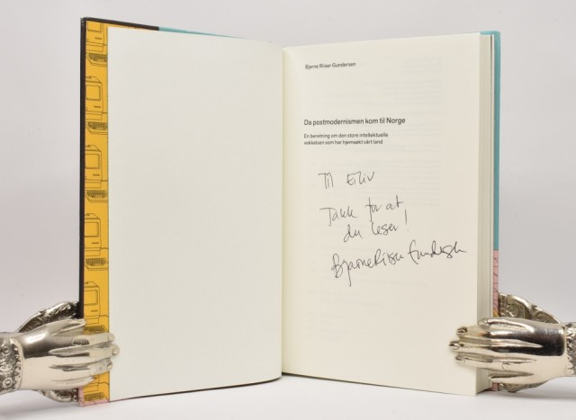 Dedikasjon fra Bjarne Riiser Gundersen til bibliofil og boksamler Eilev (Høibakken) på tittelblad.