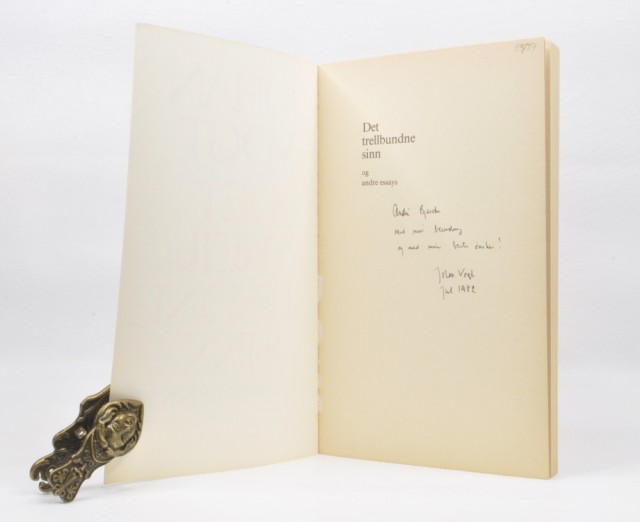 Johan Vogt: Det trellbundne sinn og... Signert Artikkelnr.: AE033 Johan Vogt: Det trellbundne sinn og andre essays. Signert NOK300,00 inkl. mva. På lager Kjøp Vipps hurtigkasseKjøp nå med Vipps hurtigkasse Del dette Produktinfo Produktanmeldelser (0) Johan Vogt: Det trellbundne sinn og andre essays. Dedikasjon til Andre Bjerke, jul 1982 fra Johan Vogt på halvtittelblad. Omslag ved Reidar Gjørven. J. W. Cappelens Forlag 1982. 8vo. 132 + [1] s. Orig. omslag. Meget pen. Skriv en produktanmeldelse og del dine erfaringer med dette produktet med andre kunder. Email Navn Din vurdering? 1 star 2 star 3 star 4 star 5 star 6 star Oppgi en tittel for anmeldelsen din Skriv inn produktanmeldelsen i feltet under