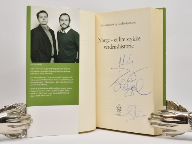 Signert hilsen fra Stian Bromark og Dag Herbjørnsrud på tittelblad.