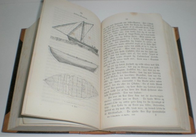 Trolig senere priv. bd. Foldekart. Noe illustrert. Noen skraper på rygg og dekler. Små pletter på snitt.