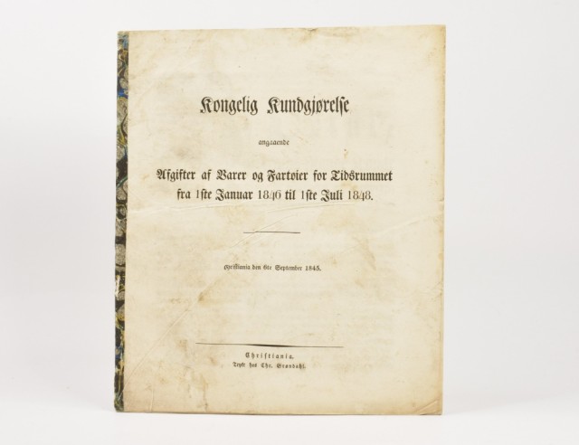 Kongelig Kundgjørelse angaaende de Afgifter af Varer og Fartøier for Tidsrummet fra 1ste Januar 1846 til 1ste Juli 1848.