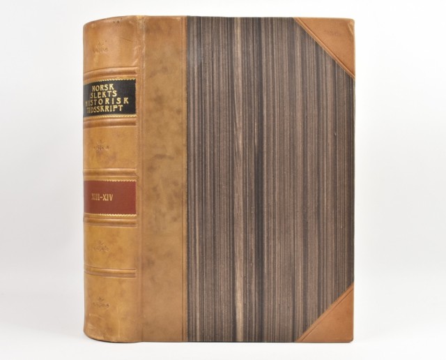 Utgit av Norsk slektshistorisk forening. Cammermeyers Boghandel, Oslo 1952-1954. 8vo. [2] + 432 + [2] + 444 s. Priv. halvskinnbd. Noe illustrert. Tabeller.