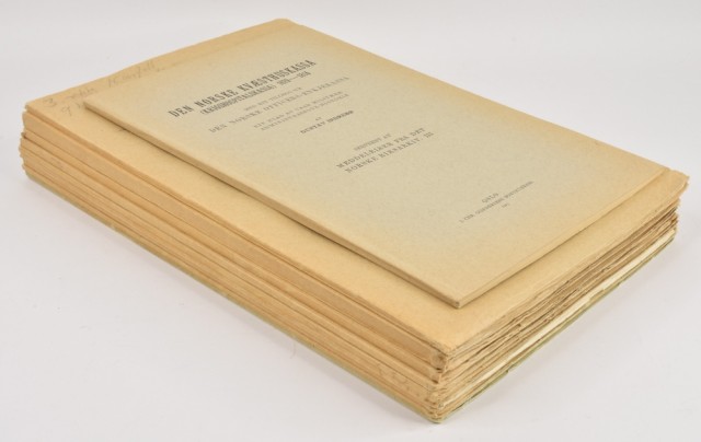Udgivne for Kjeldeskriftfondet. Jacob Dybwad, Oslo 1929-1934. Store 8vo. 50 + 116 + 60 + 55 + 39 + 31 + 52 + 31 + 60 s. Orig. omslag. Hefte I. med liten rift i omslag. Delvis uoppskårert.