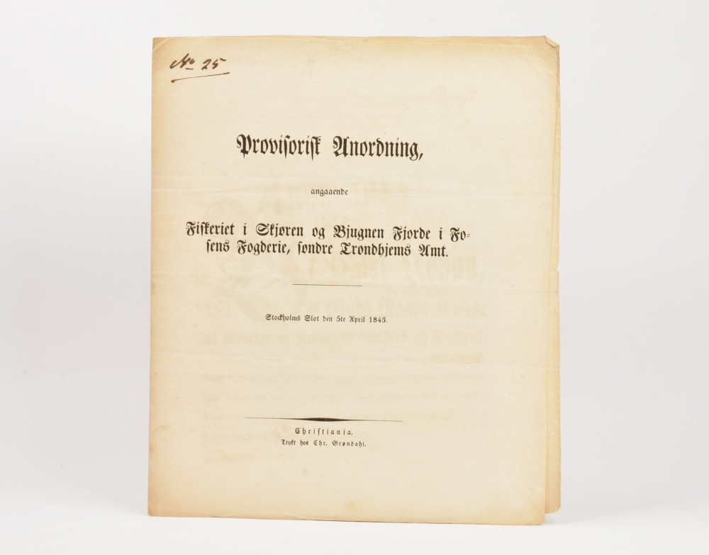Provisorisk Anordning, angaaende Fiskeriet i Stjøren og Bjugnen Fjorde i Fosens Fogderi, søndre Trondhjems Amt.