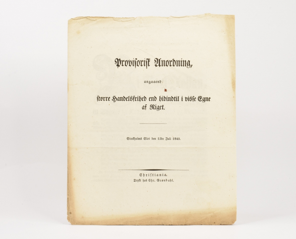 Provisorisk Anordning angaaende større handelsfrihed end... Artikkelnr.: HT404 Provisorisk Anordning angaaende større handelsfrihed end hidintil i viste Egne af Riget. Stockholm Slot den 15de Juli 1840. NOK200,00 inkl. mva. På lager Kjøp Vipps hurtigkasseKjøp nå med Vipps hurtigkasse Del dette Produktinfo Produktanmeldelser (0) Provisorisk Anordning angaaende større handelsfrihed end hidintil i viste Egne af Riget. Stockholm Slot den 15de Juli 1840. Trykt hos Chr. Grøndahl, Christiania [1843] 8vo. Et falset ark. [4] s. Leveres i syrefri klar plastkonvolutt. Skriv en produktanmeldelse og del dine erfaringer med dette produktet med andre kunder. Email Navn Din vurdering? 1 star 2 star 3 star 4 star 5 star 6 star Oppgi en tittel for anmeldelsen din Skriv inn produktanmeldelsen i feltet under