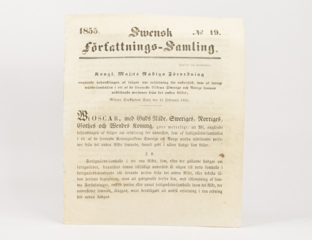 Swensk författnings-Samling. No 19. 1855.