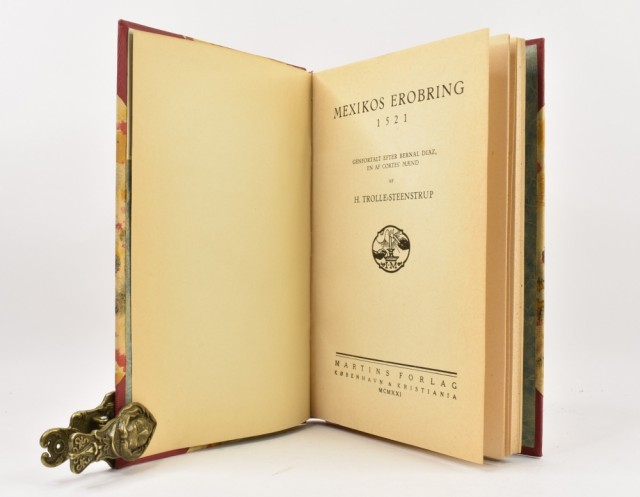 H. Trolle-Steenstrup: Mexikos erobring 1521. Artikkelnr.: HT481 H. Trolle-Steenstrup: Mexikos erobring 1521. Genfortalt efter Bernal Diaz, en af Cortes` mænd. NOK150,00 inkl. mva. På lager Kjøp Vipps hurtigkasseKjøp nå med Vipps hurtigkasse Del dette Produktinfo Produktanmeldelser (0) H. Trolle-Steenstrup: Mexikos erobring 1521. Genfortalt efter Bernal Diaz, en af Cortes` mænd. Martins Forlag, København & Kristiania MCMXXI [1921] 8vo. 126 s. Priv. halvsjirtingbd. Exlibris på forsatsblad: Aug. Paulsen-Næss. Skriv en produktanmeldelse og del dine erfaringer med dette produktet med andre kunder. Email Navn Din vurdering? 1 star 2 star 3 star 4 star 5 star 6 star Oppgi en tittel for anmeldelsen din Skriv inn produktanmeldelsen i feltet under