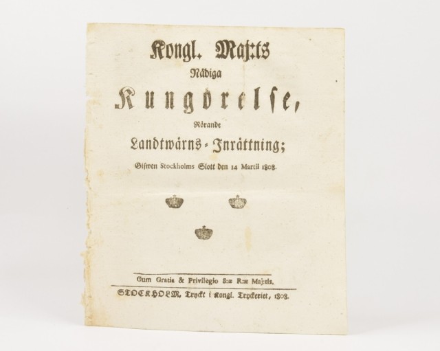 Kongl. Maj:ts Nådiga Kungörelse Rörande Landtwärns-Inrättning;