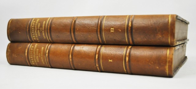 Nyt Nordisk Forlag - Arnold Busck 1926-1929. 4to. 464 + 464 s. Orig. halvskinnbd. med 5 opphøyde bind. Liten skrape på frontdekel bind I. Noen prikker på badekel bind II.