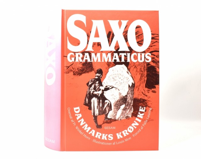 Facsimiler af det i Angers fundne brudstykke af et haandskrift af Saxos Danmarks Krønike + Indholdsfortegnelse.
