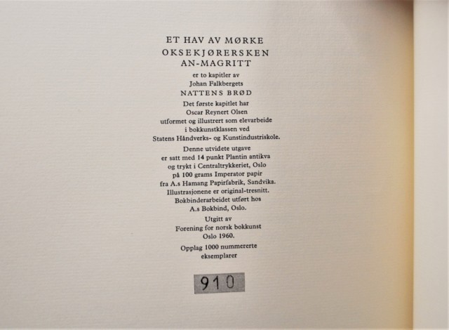 Opplag 1000 nummererte eksemplarer. Nr. 910