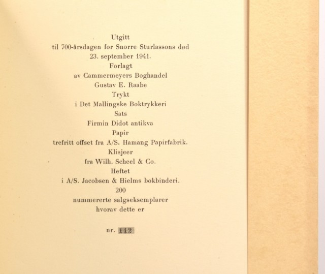 Gustav E. Raabe: Det første norske Snorre-trykk. Nr. 112. Artikkelnr.: H272 Gustav E. Raabe: Det første norske Snorre-trykk. Litt bok-historikk av [...]. 200 nummererte salgseksemplarer hvorav dette er nr. 112. NOK200,00 inkl. mva. På lager Kjøp Vipps hurtigkasseKjøp nå med Vipps hurtigkasse Del dette Produktinfo Produktanmeldelser (0) Gustav E. Raabe: Det første norske Snorre-trykk. Litt bok-historikk av [...]. 200 nummererte salgseksemplarer hvorav dette er nr. 112. Oslo MCMXLI. 4to. 43 + [1] s. Orig. omslag. Meget pen. Skriv en produktanmeldelse og del dine erfaringer med dette produktet med andre kunder. Email Navn Din vurdering? 1 star 2 star 3 star 4 star 5 star 6 star Oppgi en tittel for anmeldelsen din Skriv inn produktanmeldelsen i feltet under
