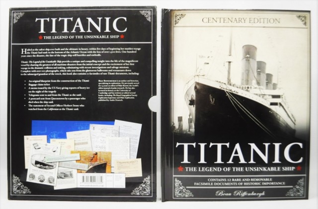 Beau Riffenburgh: Titanic Artikkelnr.: TIT014 Beau Riffenburgh: Titanic. The legend of the unsinkable ship. NOK200,00 inkl. mva. På lager Kjøp Vipps hurtigkasseKjøp nå med Vipps hurtigkasse Del dette Produktinfo Produktanmeldelser (0) Beau Riffenburgh: Titanic. The legend of the unsinkable ship. Contains 12 rare and removable facsimile documents of historic importance. Centenary Edition. Andre Deutsch 2011. 4to. 63 s. Orig. kartonert innbd. i original kassett. Rikt illustrert. Skriv en produktanmeldelse og del dine erfaringer med dette produktet med andre kunder. Email Navn Din vurdering? 1 star 2 star 3 star 4 star 5 star 6 star Oppgi en tittel for anmeldelsen din Skriv inn produktanmeldelsen i feltet under
