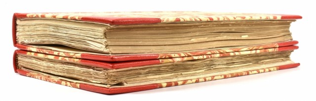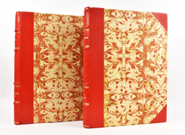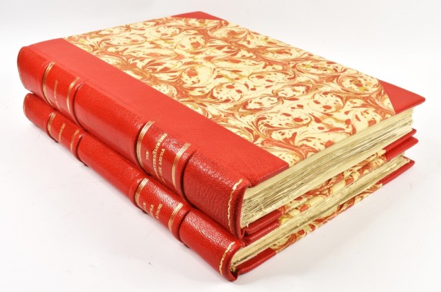 Nydelige priv. halvskinnbd. med 4 opphøyde ryggbånd og marmorerte dekler.