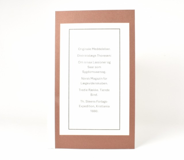 Th. Steens Forlags-Ekspedisjon, Kristiania 1880. 8vo. [1] + 74–116 s. Privat. stivt omslag med hvit ryggstripe. Hentet fra bok.
