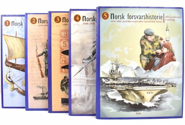 Eide Forlag, Bergen 2000-2001-2004. 4to. 334 + 344 + 348 + 404 + [1] + 415 s. Orig. bd. med smussomslag. Spor av liten kaffedråpe i yttersnitt, bind 3. For øvrig et pent sett.