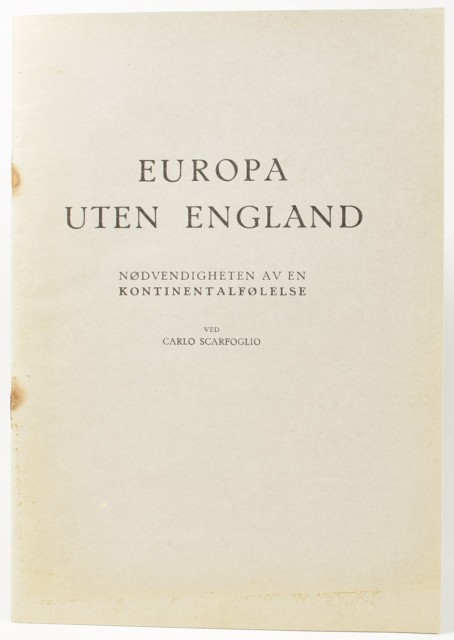 Carlo Scarfoglio: Europa uten England. Artikkelnr.: NS299 Carlo Scarfoglio: Europa uten England. Nødvendigheten av en kontinentalfølelse. NOK125,00 inkl. mva. På lager Kjøp Vipps hurtigkasseKjøp nå med Vipps hurtigkasse Del dette Produktinfo Produktanmeldelser (0) Carlo Scarfoglio: Europa uten England. Nødvendigheten av en kontinentalfølelse. Uten utgiver. Uten år [1939?] 8vo. 23 s. Orig. omslag. Rustne stifter. Skriv en produktanmeldelse og del dine erfaringer med dette produktet med andre kunder. Email Navn Din vurdering? 1 star 2 star 3 star 4 star 5 star 6 star Oppgi en tittel for anmeldelsen din Skriv inn produktanmeldelsen i feltet under