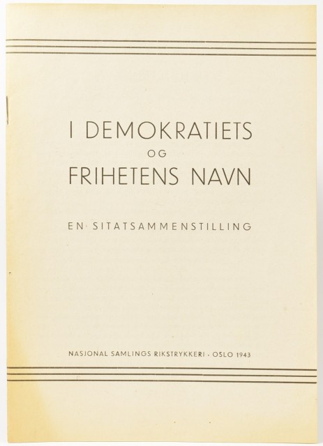 Div. forfattere: I demokratiets og frihetens navn. Artikkelnr.: NS298 Div. forfattere: I demokratiets og frihetens navn. En sitatsammenstilling. NOK150,00 inkl. mva. På lager Kjøp Vipps hurtigkasseKjøp nå med Vipps hurtigkasse Del dette Produktinfo Produktanmeldelser (0) Div. forfattere: I demokratiets og frihetens navn. En sitatsammenstilling. Nasjonal Samlings Rikstrykkeri, Oslo 1943 8vo. 12 s. Orig. kombinert omslag og tittelblad. Skriv en produktanmeldelse og del dine erfaringer med dette produktet med andre kunder. Email Navn Din vurdering? 1 star 2 star 3 star 4 star 5 star 6 star Oppgi en tittel for anmeldelsen din Skriv inn produktanmeldelsen i feltet under
