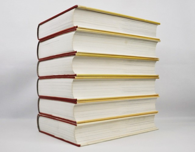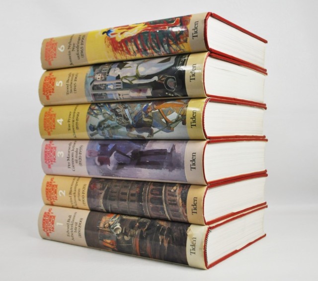 Tiden Norsk Forlag, Oslo 1985-1990. 8vo. 559 + 599 + 616 + 634 + 605 + 606 s. Orig. kunstskinnbd. med smussomslag. Noen mindre rifter i smussomslag er forsterket med tape. Rikt illustrert. Et meget solid og pent sett.