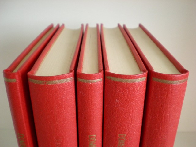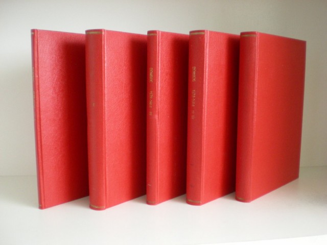 Avfotografert og trykt i offset i Riksarkivet Oslo 1982. 8vo. 4 + 355 + (1) - (2) + 149 - (2) + 231 - (2) + 206 + (1) - (2) + 420 + (2) + 95 s. Priv. bd. Forgyllning i ryggen på bind I og V er borte. Noe ubetydelig smuss på frondekel bind IV og V1.
