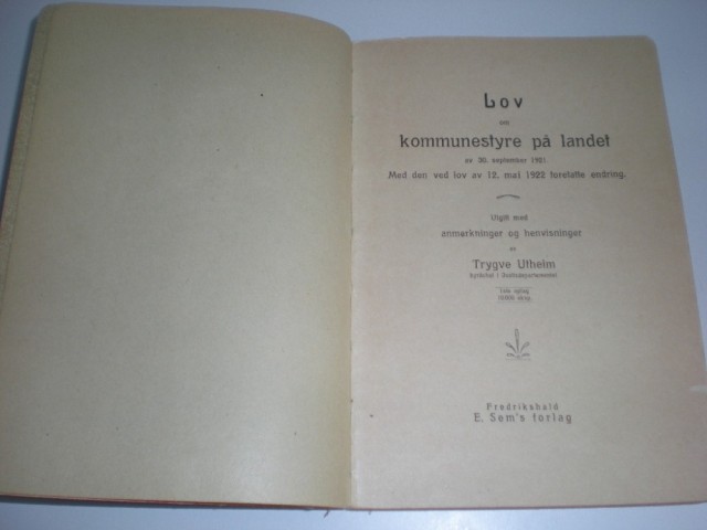 Trygve Utheim: Lov om kommunestyre på landet av 30. september 1921.