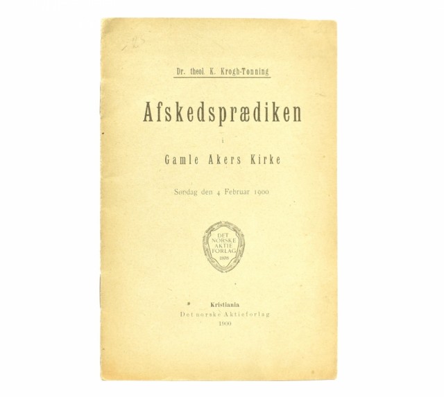 Afskedsprædiken i Gamle Akers Kirke Søndag den 4 Februar 1900. Artikkelnr.: 00225 Dr. theol. K. Krogh-Tonning: Afskedsprædiken i Gamle Akers Kirke Søndag den 4 Februar 1900. NOK100,00 inkl. mva. På lager Kjøp Vipps hurtigkasseKjøp nå med Vipps hurtigkasse Del dette Produktinfo Produktanmeldelser (0) Dr. theol. K. Krogh-Tonning: Afskedsprædiken i Gamle Akers Kirke Søndag den 4 Februar 1900. Det norske Aktieforlag, Kristiania 1900. 8vo. 16 s. Orig. omslag. Skriv en produktanmeldelse og del dine erfaringer med dette produktet med andre kunder. Email Navn Din vurdering? 1 star 2 star 3 star 4 star 5 star 6 star Oppgi en tittel for anmeldelsen din Skriv inn produktanmeldelsen i feltet under
