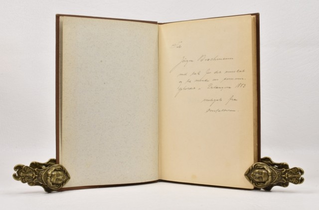 Dedikasjon til Jørgen Brochmann fra oversetteren (Joh. Marstrander) på dedikasjonsblad.