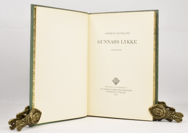 Andreas Haukland: Gunnars lykke. Artikkelnr.: SK129 Andreas Haukland: Gunnars lykke. Fortælling. NOK100,00 inkl. mva. På lager Kjøp Vipps hurtigkasseKjøp nå med Vipps hurtigkasse Del dette Produktinfo Produktanmeldelser (0) Andreas Haukland: Gunnars lykke. Fortælling. Gyldendalske Boghandel, Nordisk Forlag, Kjøbenhavn og Kristiania 1910. 8vo. 133 + [1] s. Orig. dekorert helsjirtingbd. Noe solbleket rygg, for øvrig meget pen. Skriv en produktanmeldelse og del dine erfaringer med dette produktet med andre kunder. Email Navn Din vurdering? 1 star 2 star 3 star 4 star 5 star 6 star Oppgi en tittel for anmeldelsen din Skriv inn produktanmeldelsen i feltet under