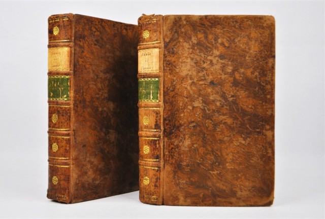 A Paris, Chez Michel Lambert, Imprimeur Libraire, rue de la Harpe, près S. Come. M. DCC. LXXXV (1785) Liten 8vo. 536 + (3) + 491 s. Trolig orig. helskinnbd. med 5 opphøyde ryggbånd. Dekler, hjørner og rygg med litt slitasje. Materien meget pen.