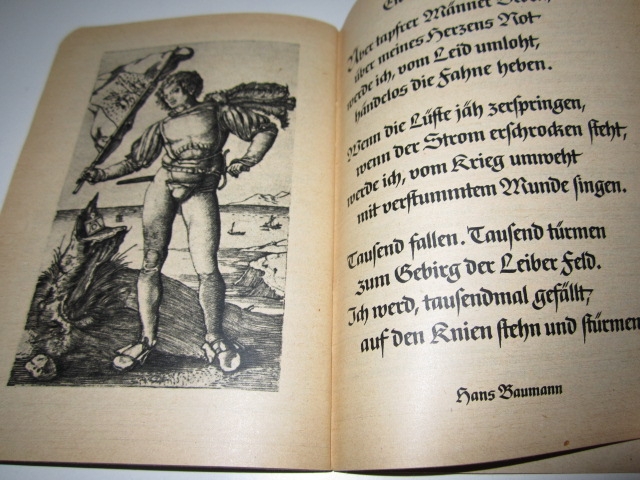 Im Auftrag des Oberkommandos der Wehrmacht herausgegeben von Hans Baumann, Leutnant. Ludwig Voggenreiter. Potsdam 1939. 2., veränderte Auflage. Liten 8vo. 128 + (1) s. Orig. omslag. Illustrert.