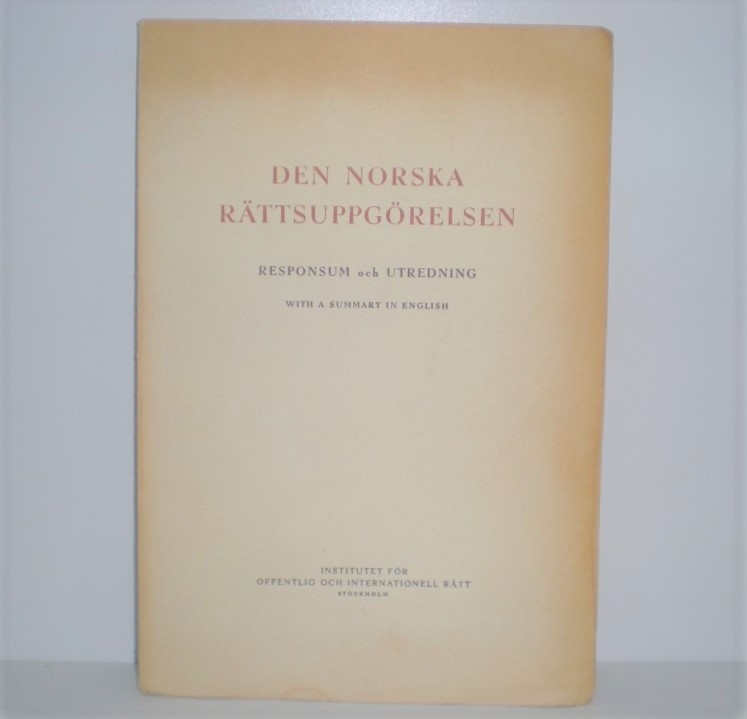 Den Norska rättsuppgörelsen. Artikkelnr.: 3239 Den Norska rättsuppgörelsen. Responsum och utredning. With a summary in english. NOK100,00 inkl. mva. På lager Kjøp Vipps hurtigkasseKjøp nå med Vipps hurtigkasse Del dette Produktinfo Produktanmeldelser (0) Den Norska rättsuppgörelsen. Responsum och utredning. With a summary in english. Intitutet for offentlig och internationell rett. Stockholm U. å. 4to. 174 s. Orig. omslag. Gulnet langs kanter. Noe brunplettet rygg. Skriv en produktanmeldelse og del dine erfaringer med dette produktet med andre kunder. Email Navn Din vurdering? 1 star 2 star 3 star 4 star 5 star 6 star Oppgi en tittel for anmeldelsen din Skriv inn produktanmeldelsen i feltet under