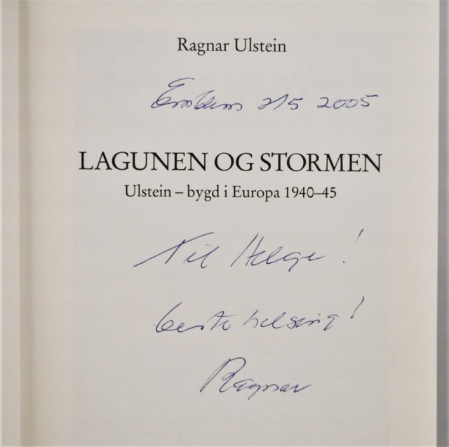 Ragnar Ulstein: Lagunen og stormen. Signert. Artikkelnr.: 5705 Ragnar Ulstein: Lagunen og stormen. Ulstein - bygd i Europa 1940-45. NOK300,00 inkl. mva. På lager Kjøp Vipps hurtigkasseKjøp nå med Vipps hurtigkasse Del dette Produktinfo Produktanmeldelser (0) Ragnar Ulstein: Lagunen og stormen. Ulstein - bygd i Europa 1940-45. Dedikasjon til Hege, signert av Ragnar (Ulstein) på tittelbladet. H. Aschehoug, Oslo 1999. 8vo. 464 + [1] s. Orig. bd. med smussomslag. Minirift i smussomslag. Rikt illustrert. Skriv en produktanmeldelse og del dine erfaringer med dette produktet med andre kunder. Email Navn Din vurdering? 1 star 2 star 3 star 4 star 5 star 6 star Oppgi en tittel for anmeldelsen din Skriv inn produktanmeldelsen i feltet under