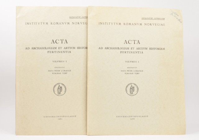 Titian’s Madonna de Ca’ Pesaro and its historical significance. Repr. from Institutum Romanum Norvegiae, 1962. 4to. Pag. 139-169 + 15 plates. BOTH PUBLICATIONS INSCRIBED to Bjørn Hougen from Sinding-Larsen.